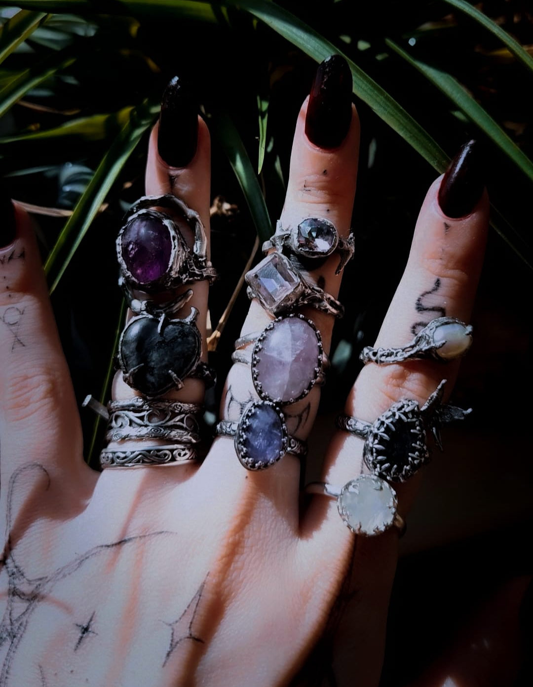 Shaping silver with fire, saw, and hammer. Each piece is unique, gothic,...